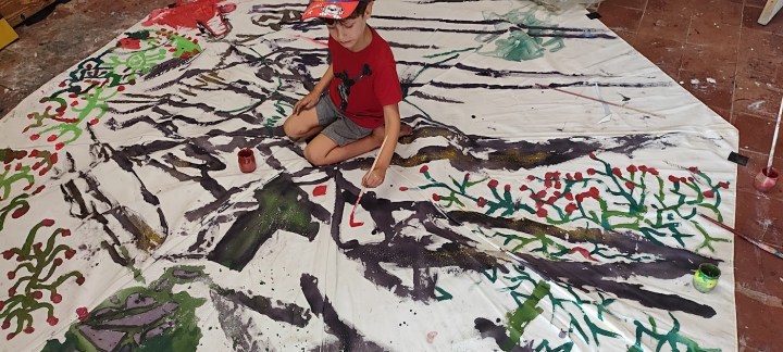 Je documente le site au fur et à mesure de l’année, au fur et à mesure des mercredis de l’Atelier des enfants libres. Nos sources réunies sous forme de notes, j’y capte les enfants et leurs gestes, nos apparitions, nos trouvailles, du merveilleux. Les plantes du Sud entourent les films, la réalisation des Grandes Figures, notre imaginaire, notre joie. Les films sont visibles sur demande : sarahcassenti@yahoo.com. Vous pouvez consulter le journal de l’atelier sur le compte instagram de A.Polina : https://www.instagram.com/polina_la_ciotat/